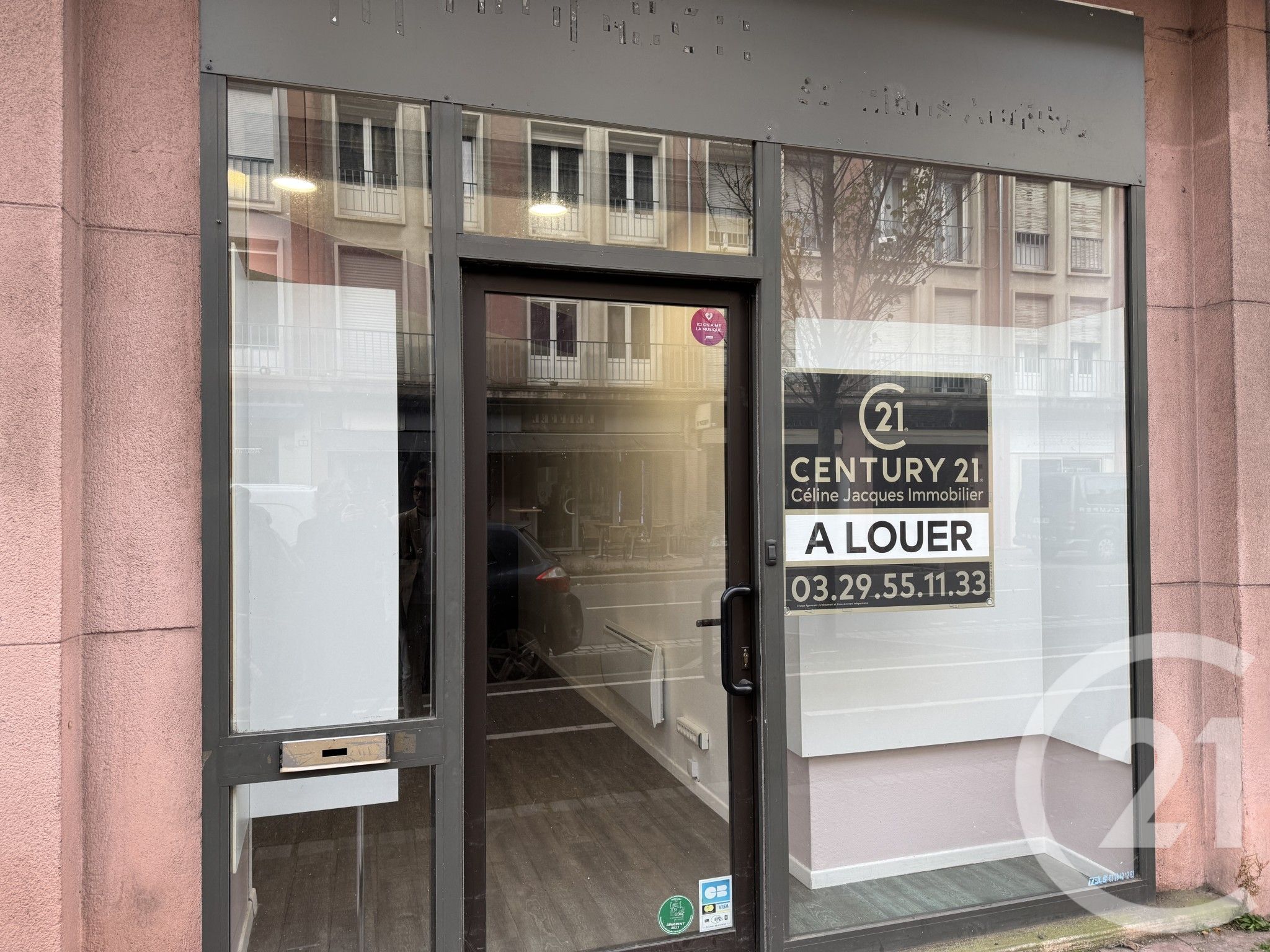 Un local avec vitrine donnant sur rue commerçante comprenant une grande pièce d'accueil avec placards, un dégagement, une pièce d'archivage, un WC avec lave mains, deux bureaux en enfilade.